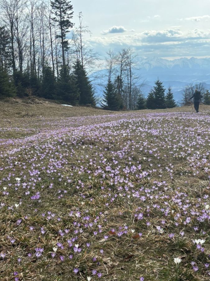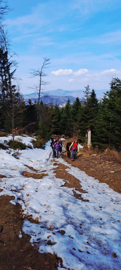 W wycieczce wzięły udział 24 osoby. Po dojeździe do Szczawnicy, ruszyliśmy z osiedla Sewerynówka, niebieskim szlakiem prowadzącym między innymi przez wierzchołek Czeremchy (1141m npm) i po około 2 i pół godziny dotarliśmy do Schroniska PTTK na Przehybie. Następnie zgodnie z programem, zainteresowani wzięli udział w polowej mszy świętej, po której oficjalnie ogłoszono otwarcie sezonu turystycznego w Małopolsce. Następnie rozpoczęła się biesiada przy ogniskach, pieczenie kiełbasek i spotkania towarzyskie. Szczęśliwie, przez cały czas towarzyszyła Nam piękna, słoneczna pogoda. Po zrobieniu sobie pamiątkowych zdjęć ruszyliśmy w drogę powrotną. Schodziliśmy szlakiem zielonym w kierunku Szczawnicy-Staszowa, przez liczne polany na których natknęliśmy się na kobierzec krokusów, z białymi włącznie (!) oraz licznymi kwiatami wczesnowiosennymi.Do Zakopanego wróciliśmy około godziny 18.30. W czasie powrotu zapoznałem wszystkich z programem dalszych wycieczek.